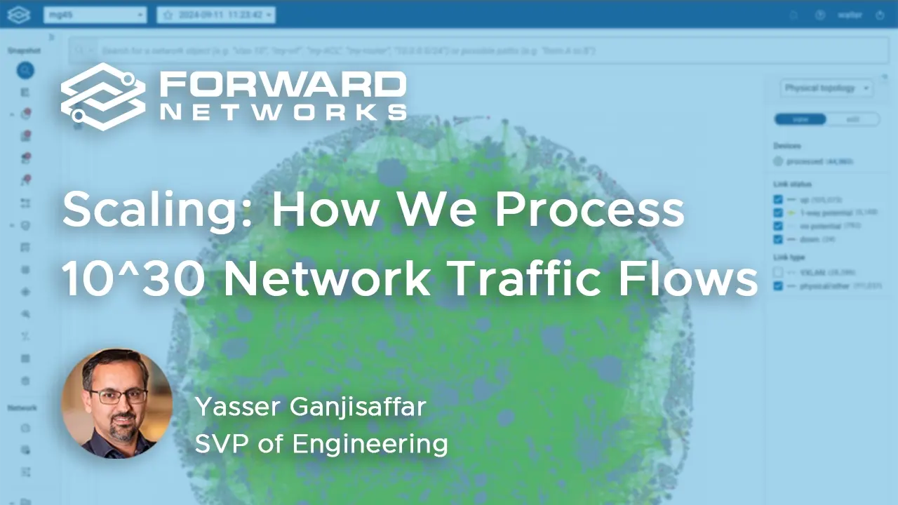 Each of these flows can be complex. If we were to spend 1 microsecond to compute each of these flows, it would take us more than 1017 years to compute this. After years of advanced engineering work, algorithmic optimizations, and performance optimizations, we are able to process this network in under an hour on a single box. In the majority of cases, the computation scales linearly. For customers who need faster processing speed or higher verification throughput, we offer a cluster version, which can be scaled up or down as needed.