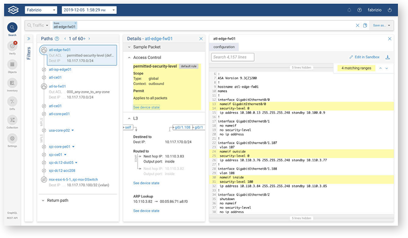 Forward Networks industry-leading verification platform, Forward Enterprise, analyzes and verifies network behaviors and security posture, to proactively surface configuration errors and policy intent violations. The platform can compare the intent of the network designers to actual end-to-end behavior in order to expose any inconsistencies. Network IT teams can now obtain quick access to relevant network data to troubleshoot rapidly and eliminate problems prior to a security breach or a network outage.