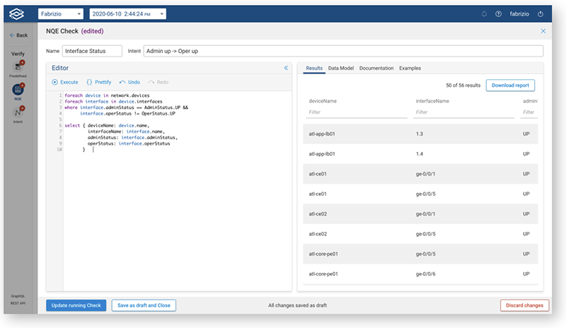 - Network Query Engine is unmatched to any other in the industry which can be leveraged for many purposes such as finding the relevant information quickly, validating intents by writing simple condition checks etc.