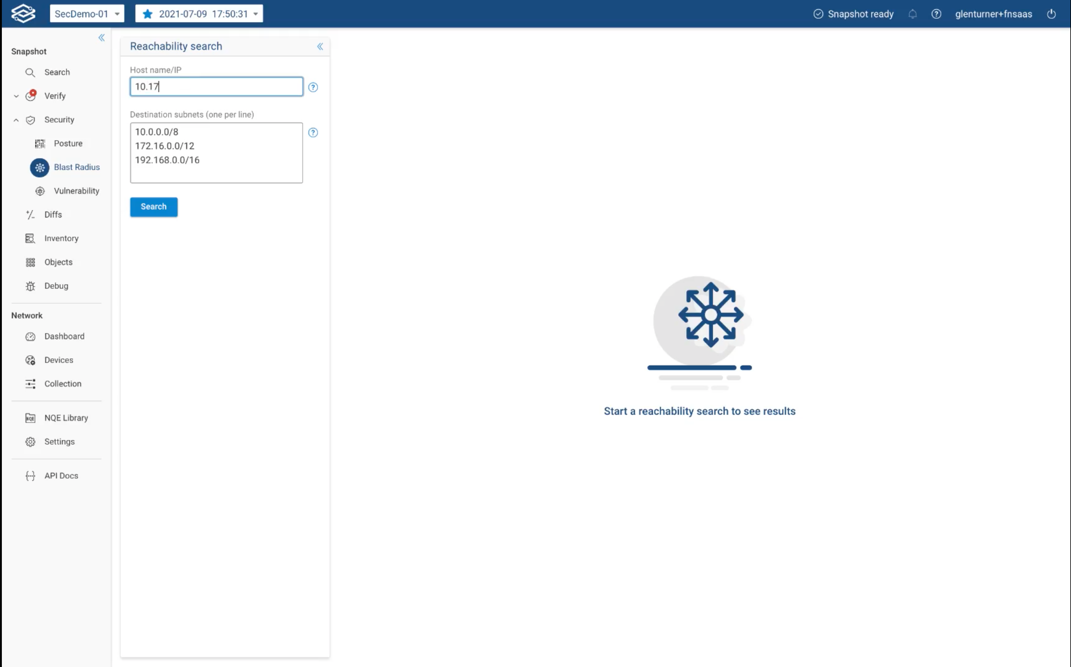 Forward Enterprise users can create an accurate report of current exposure in seconds. Combining the power of network snapshots