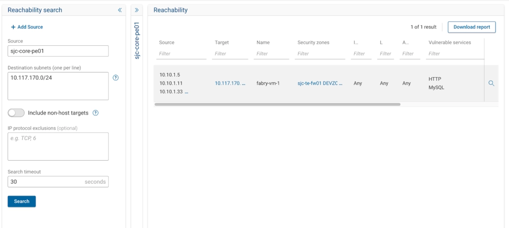 Forward Networks’ Blast Radius feature provides a detailed analysis of the threat exposure: