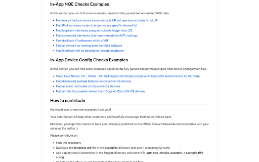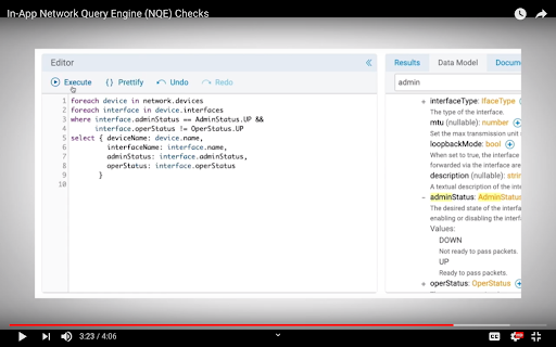 In-App NQE Checks @ Tech Field Day 21: https://www.youtube.com/watch?v=MvrdQft7N5w