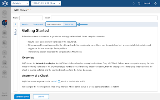 In-App NQE Checks augments NQE by enabling customers to create custom verification checks, using the NQE data model, directly in the Forward Enterprise browser-based interface. No development skills needed, no scripts to build and maintain, just a simple and intuitive 3 step process: